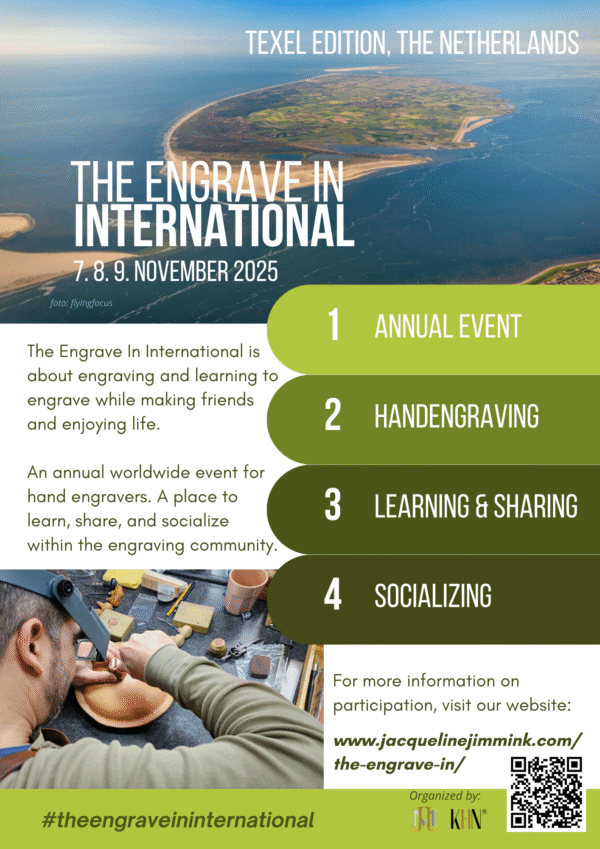 “De zee, de stilte en het licht van Texel nodigen uit tot precisie en concentratie – precies wat graveren vraagt,” aldus Jacqueline Jimmink, oprichtster van KHN® Kenniscentrum Handgraveren Nederland.